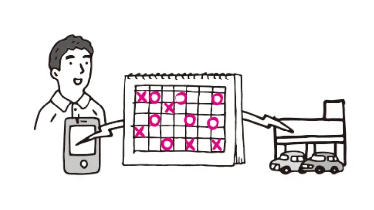 24時間365日、スマートフォンやパソコンから車検・点検の予約をすることができます。