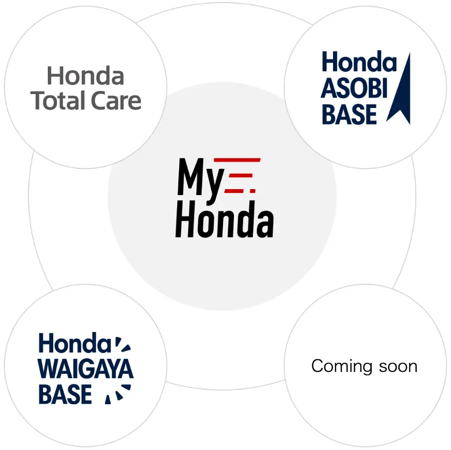 Honda IDをご登録いただくと、My Hondaを入口として、Hondaの様々なサービスと連携することができます。連携サービスは今後も増えていきます。